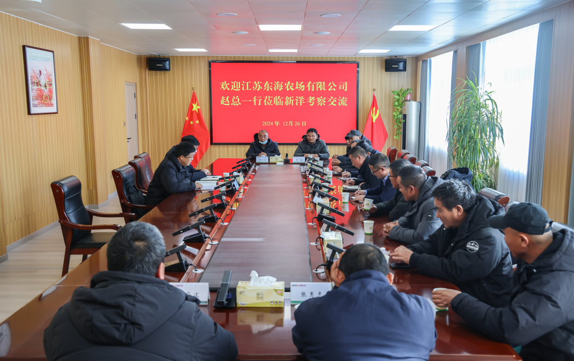 12月26日,江苏东海农场有限公司副总经理赵金虎带领相关单位、部门以及各生产区和大队相关负责人一行,到苏垦农发新洋分公司考察交流农业生产经营。新洋分公司副总经理耿辉辉等陪同。
