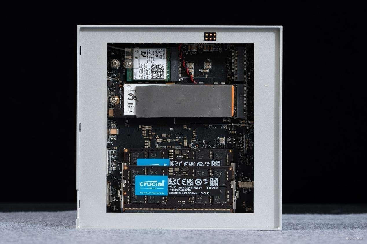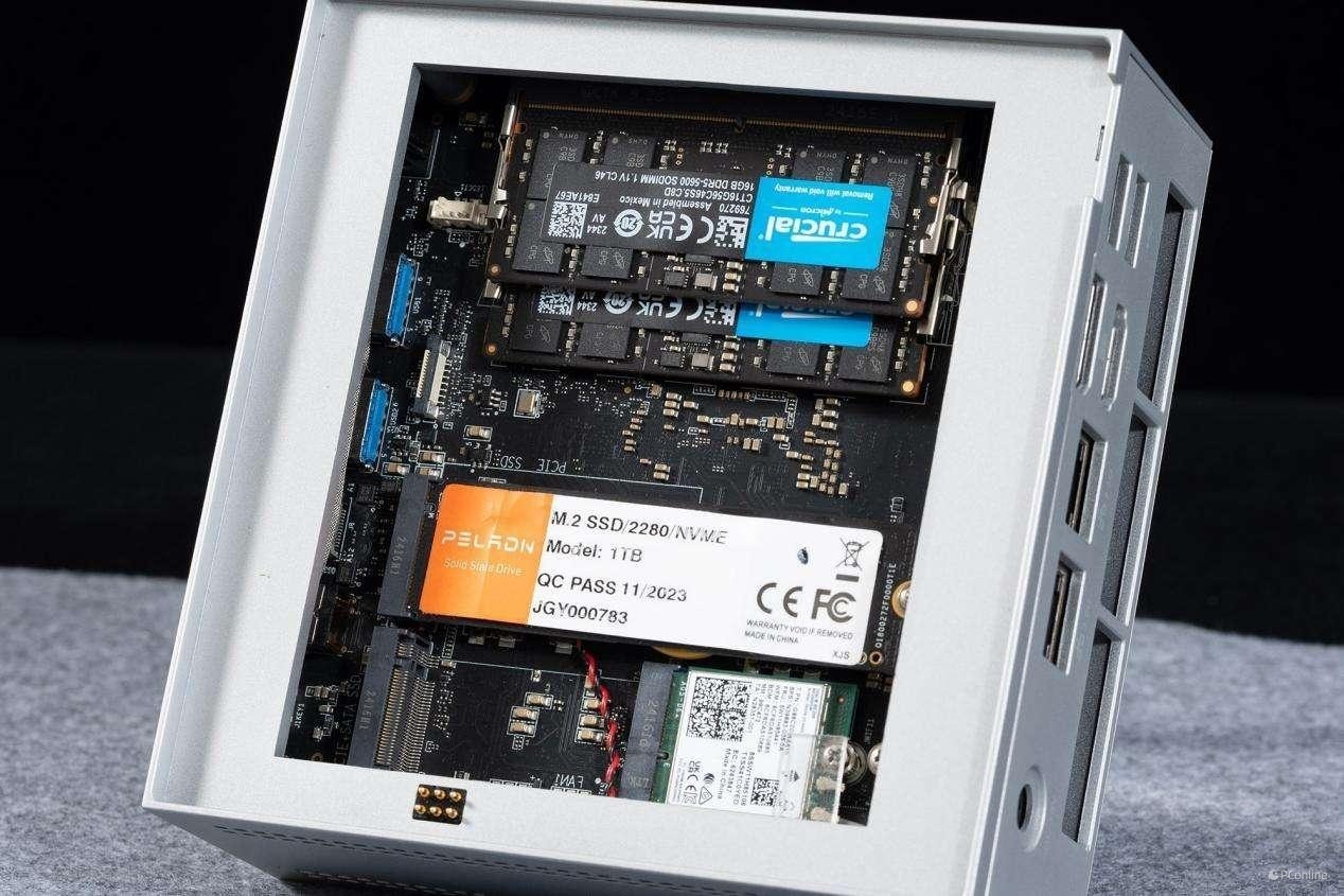 我们本次拿到的磐镭 HO5主机采用官方预装的套装方案,其中配备了 32GB DDR5 内存与 1TB PCIe 4.0 SSD,为用户提供了开箱即用的高效体验。面向更广泛的消费者,磐镭还提供了准系统版本(无内存、硬盘),可自由根据个人需求进行硬件搭配。