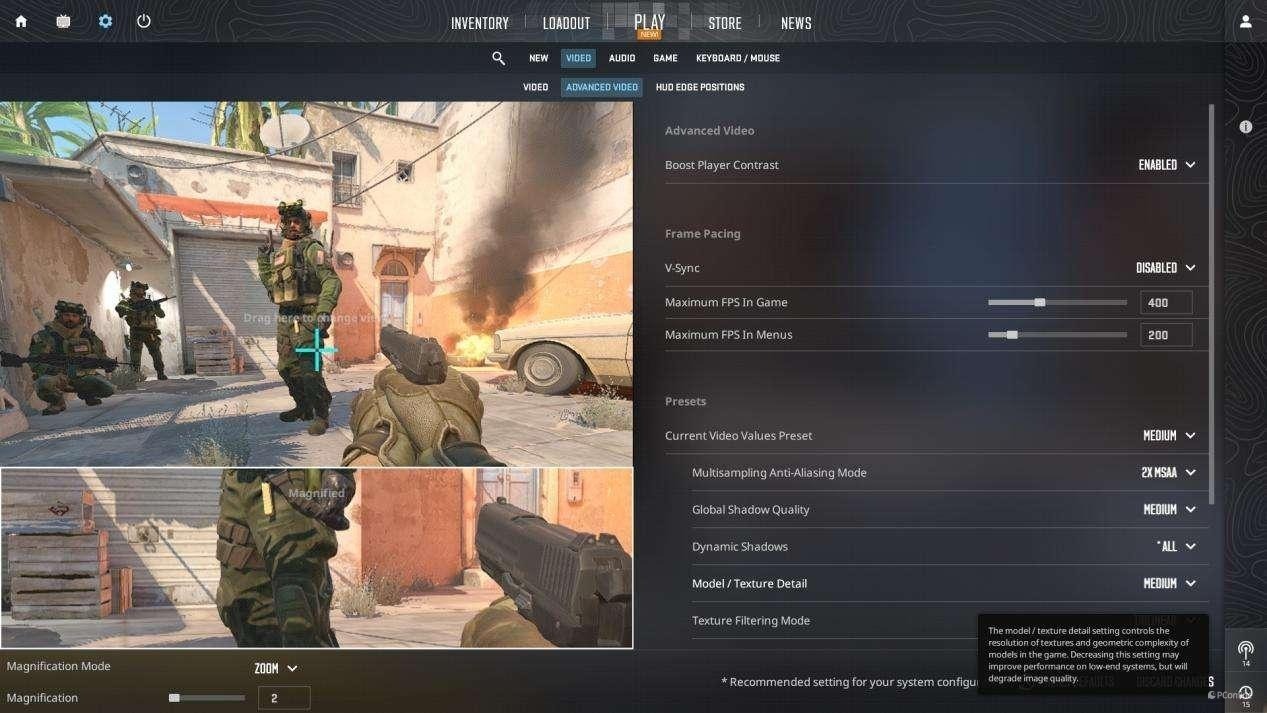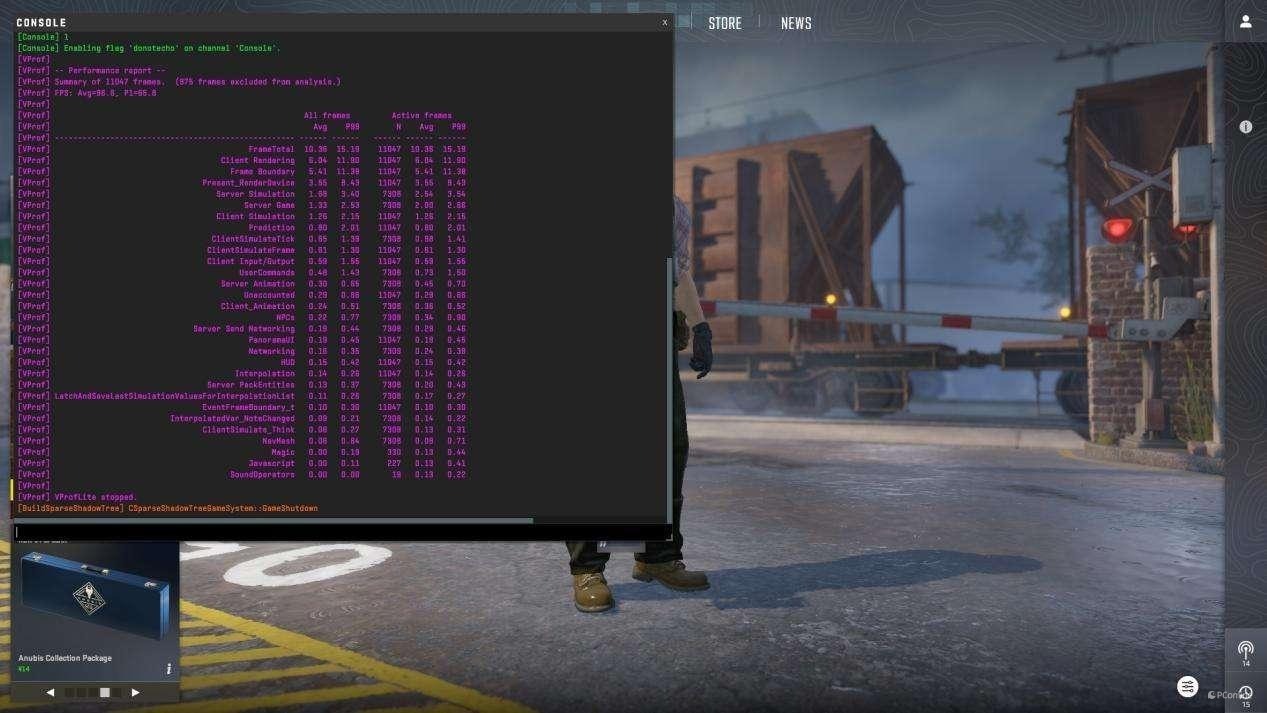 游戏方面,我们选用了两款热门游戏进行了实测。在《CS2》中将画质设为中等(2X MSAA、多重采样抗锯齿、中等全局阴影质量、动态阴影开启)后,通过内置性能分析工具记录的平均帧率达到 96.6 FPS,帧率稳定性很高,能满足竞技类游戏对于流畅度的要求。