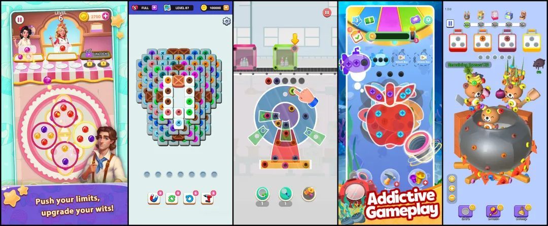 部分团队则把心思花在题材上面,例如糖果店经营题材《Candy Town Story》、麻将题材《Screw Tile》、运输货物题材《Master ScrewBolts Game》、潜水题材《Ocean Screwman》;以及更有趣的图案等。