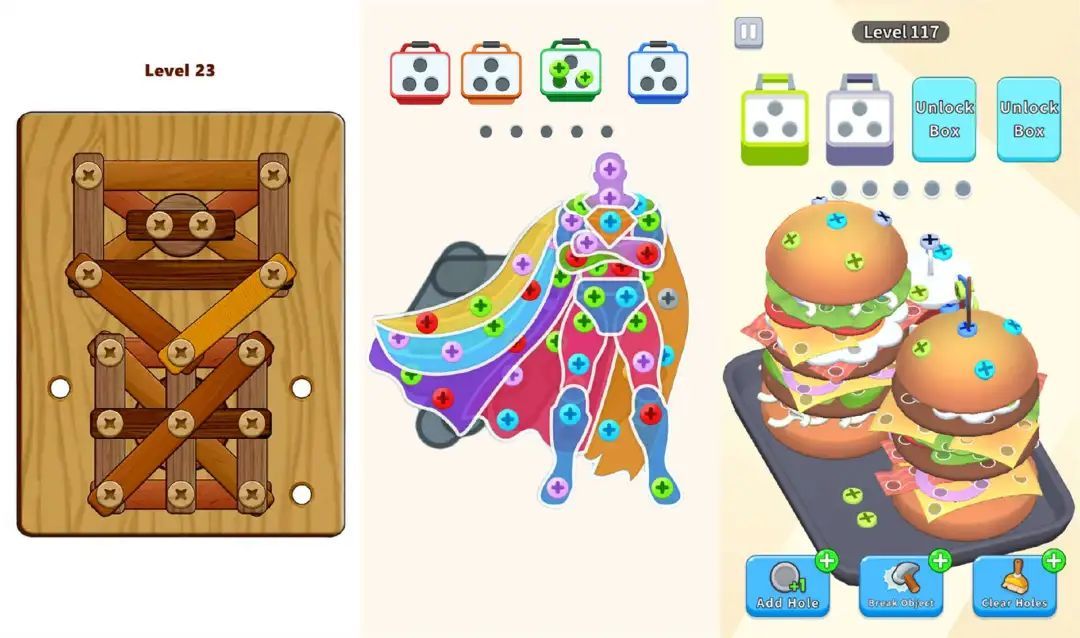 勇往科技旗下打螺丝游戏,最右为《Screw Away》