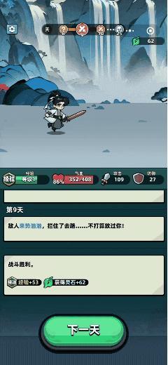 《再生之境》通过副玩法买量来吸引玩家。核心玩法是类似《用魔法打败魔法》的仙侠RPG(道士题材)+爬塔对抗,类似《躺平发育》的「睡觉抓鬼+塔防」副玩法则穿插其中。游戏自11月底排名便一路攀升,用半个多月的时间爬到了畅销榜TOP60。