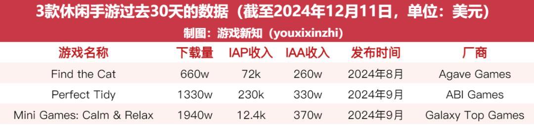 其中,海外移动广告分析师Felix Braberg分析了3款近期比较热门的休闲手游,它们单月下载量在数百万至两千万,IAA收入则达到千万元量级,并且占总营收的九成以上。