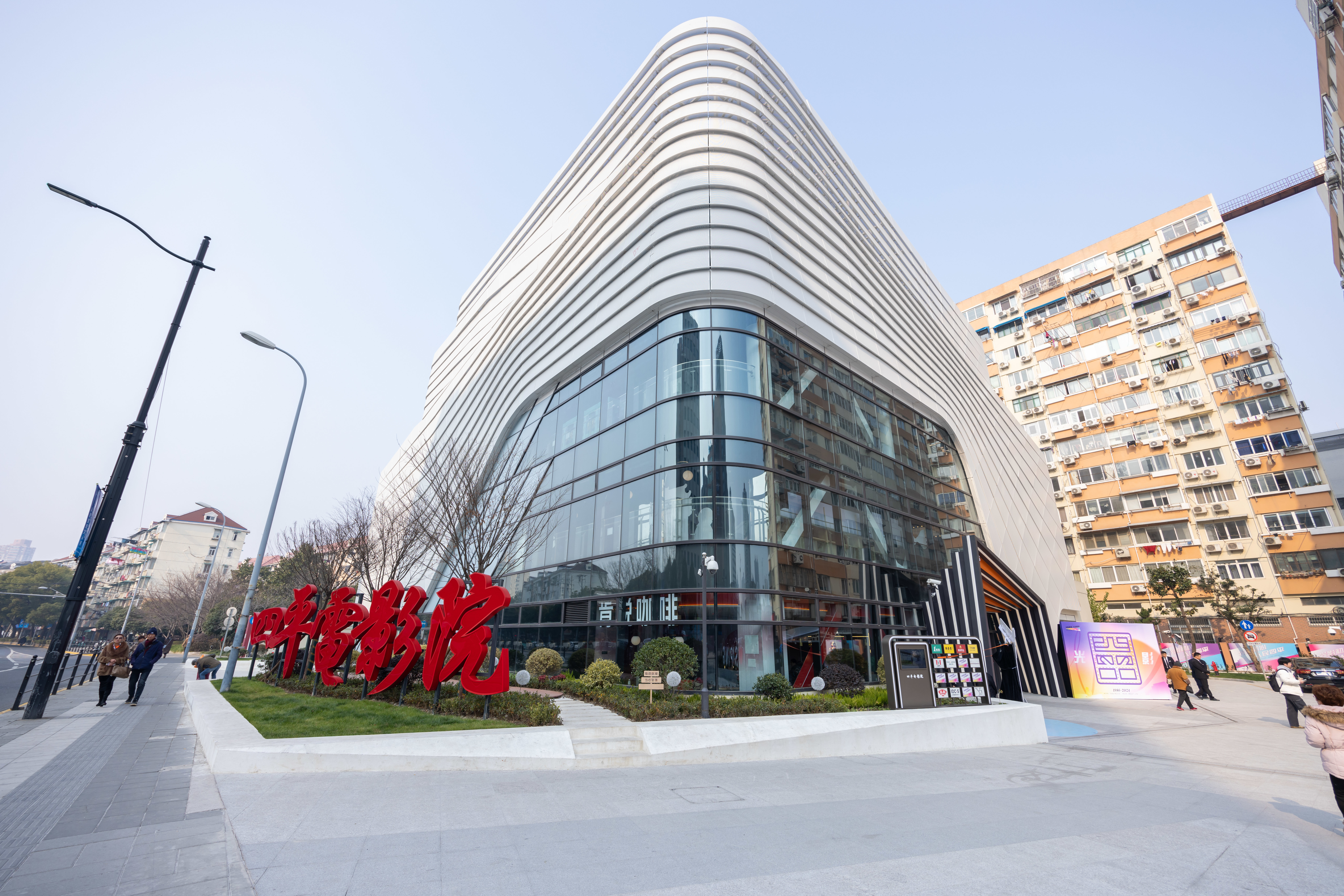 历经两次改扩建,四平电影院目前已集电影+休闲+美食+怀旧为一体。总体来看,焕新后的四平电影院更具现代感,周身流线型加落地窗的设计让影院更为醒目。同时,内部的影厅也大幅扩容,从3个增至6个。四楼的全景声巨幕厅可容纳206人同时观影,使用飞机头等舱同款座椅。同层的VIP厅将与一层餐饮品牌合作推出电影票美食套餐。此外,全景声巨幕厅和三楼4个影厅打造成光影初心厅、共济新光厅、西索文华厅、品弦艺术厅、花YOUNG集结厅5个主题影厅,通过与同济大学艺术与传媒学院、上海民族乐团、上海外国语大学艺术教育中心、杨浦团区委等联动,建立融合思政教育、文化交流、社会美育等场景功能的互动平台。 作为红色主题影院,四平电影院还将探索“主旋律引领、市场化驱动、多主体协同”的运营模式,定期开展“光影初心·人民四平”红色电影公益放映、“老杨树讲红色电影”理论宣讲等品牌活动。