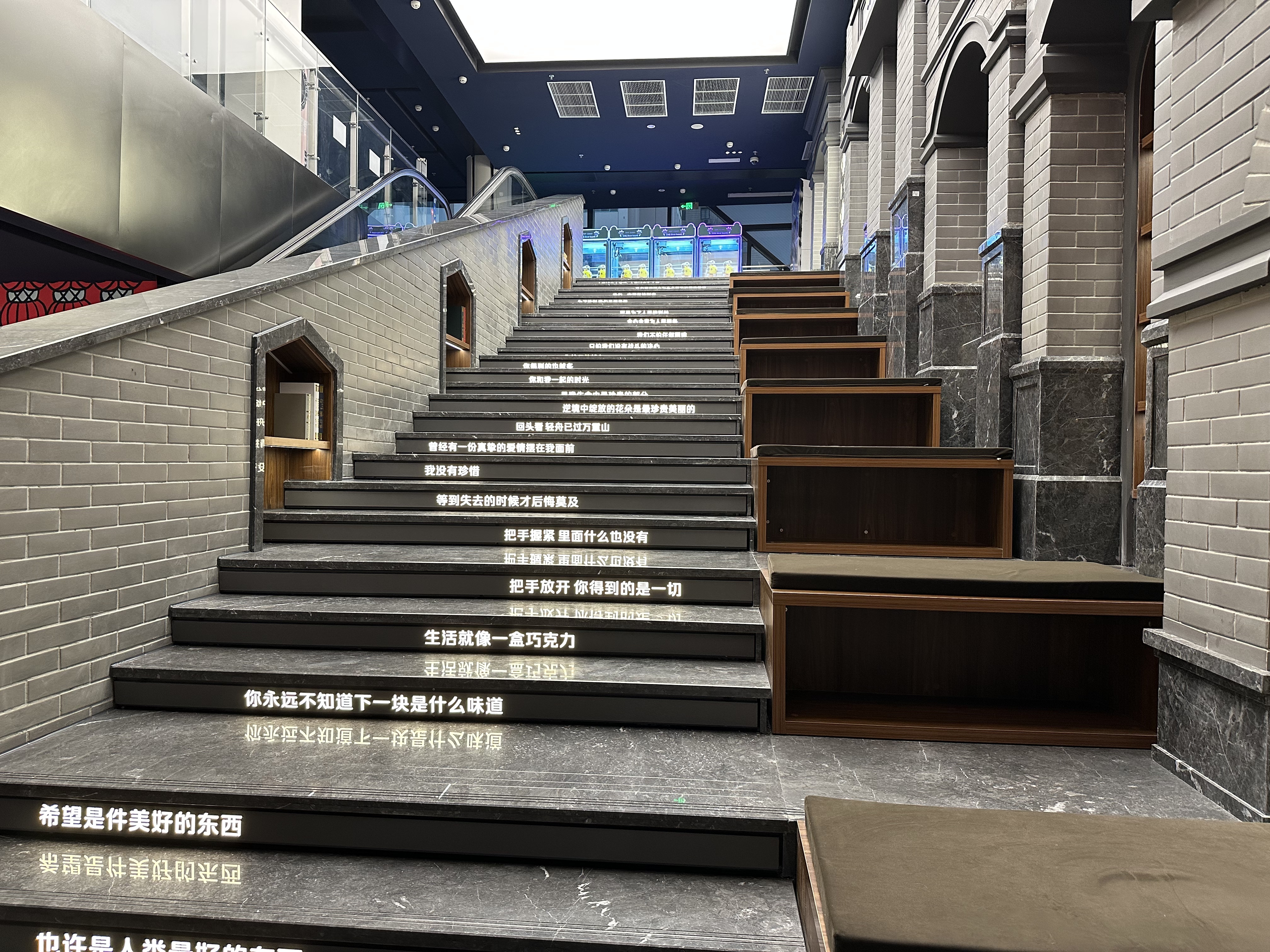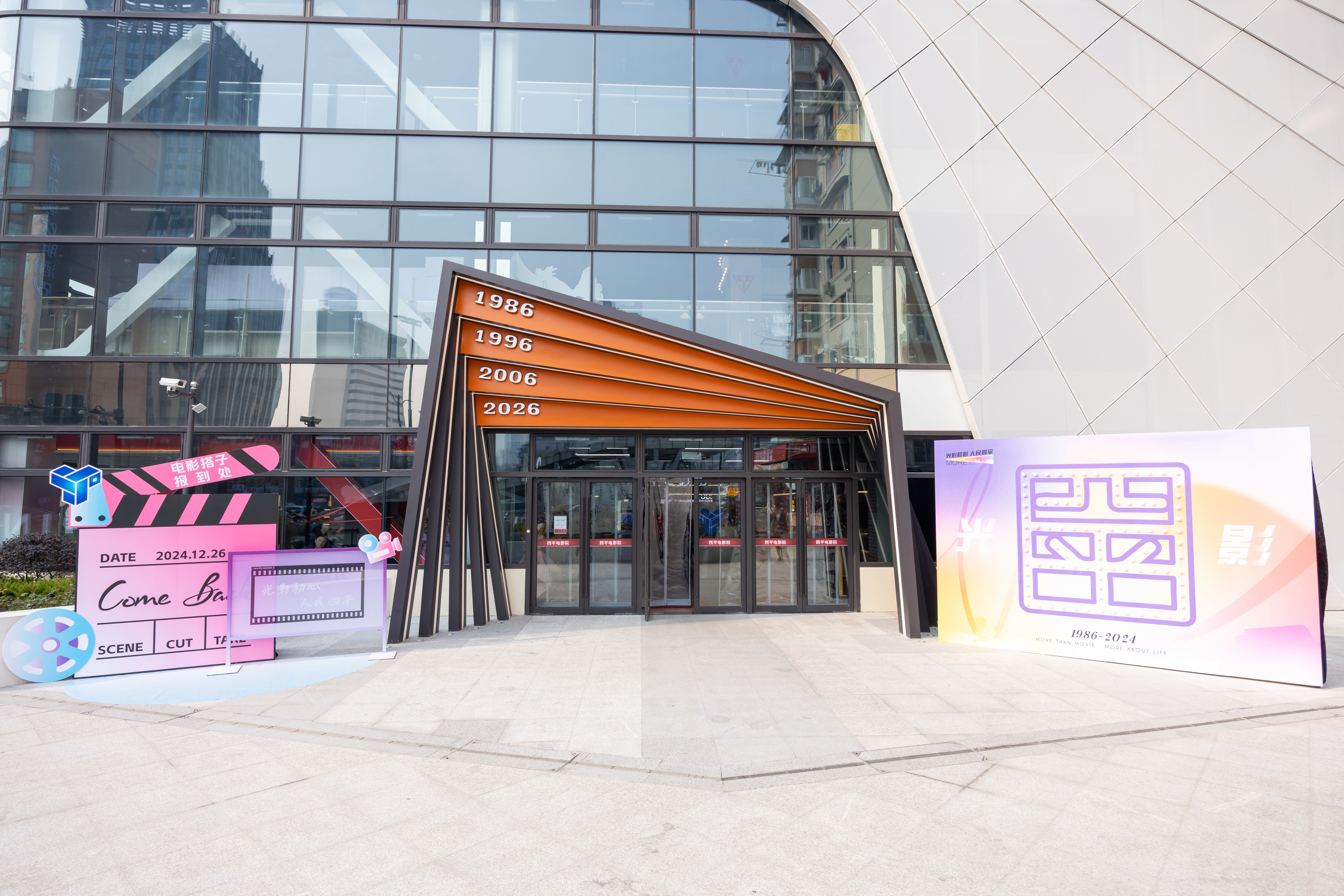 作为几代杨浦人回忆里的重要地标,四平路电影院此次特意把“时间”元素融入设计当中,大门门头从1986年起以10年为间隔道道推进,走入影院犹如走进“时空隧道”。影院的二楼和三楼间,一句句经典台词在台阶上闪着光,与旁边的石库门墙面共同形成了一条时光阶梯。除此以外,这里还将以“时光雅集”IP为主线打造时光咖啡、时光潮玩、时光相馆等怀旧打卡点,带观众“重返”上个世纪80年代。