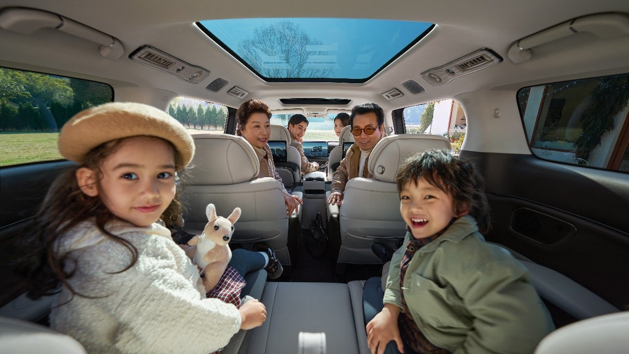 七座无差别舒适臻享,将驾乘舒适做到行业领先。前排臻享座椅,配备10点式按摩、主驾头枕音响等功能,将驾驶员的舒适体验升维。二排Air SPA双零重力座椅,支持一键零重力模式,座垫翘起15°,靠背角度至高可达152°,配备同级少有的16点式按摩,特别设计了零重力座椅专用安全带等,配合二排双桌板、双头枕屏等功能,将舒适和安全做到极致。三排座椅后端滑轨增加30mm,进一步增加空间的灵活性,舒适性媲美豪华SUV的第二排;三排L型头枕支持垂直伸缩调节,兼顾大人小孩的头部高度,实现全员舒适,真正做到了三排平权。