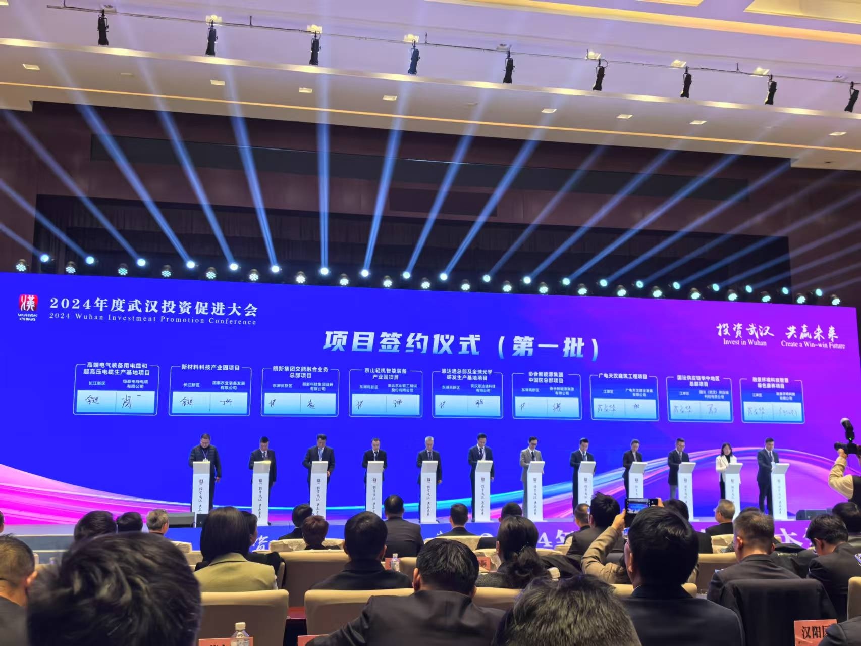 此次大会集中签约150个项目,涵盖光电子信息、大健康和生物医药、新能源和智能网联汽车、高端装备、智能制造和商贸物流等多个领域。这些项目创新含量高、集聚效应好、发展潜力足,将有力赋能武汉高质量发展。其中也包括多个总部项目,如:协合新能源集团中国区总部、恩达通总部、程力集团总部、联投矿产资源总部、华动智造科技有限公司总部、联乘智能(武汉)科技有限公司总部、中致远保时捷全车系交互体验及销售华中总部、翌光科技光医疗华中总部、天猫优品华中总部等。