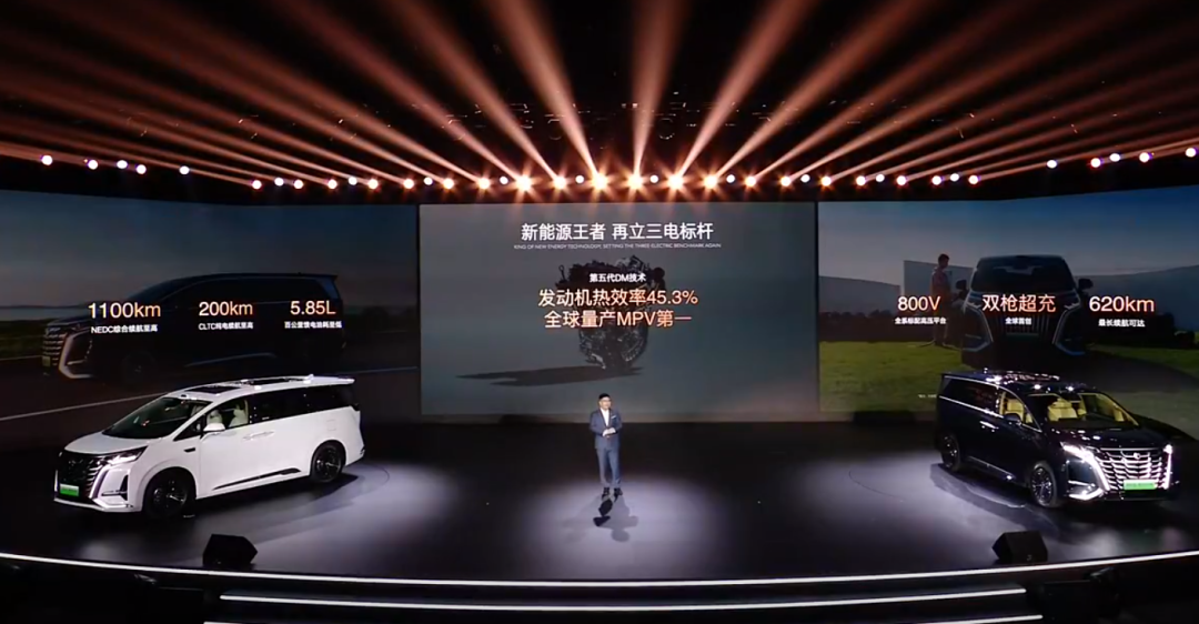 新车不仅在外观设计上进行了全面革新,更是在科技配置和动力系统上再添“猛料”,其最大的亮点就是第五代DM技术加持,纯电续航硬刚到了145-155公里,亏电油耗直接杀到7.15升,堪称中国新能源豪华MPV新高度。