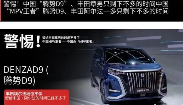 甚至近日日本媒体还专门发文提醒丰田章男,警惕中国“MPV王者”腾势D9对丰田埃尔法的威胁。
