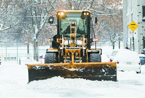 加拿大蒙特利尔,铲雪车正在清理道路积雪。