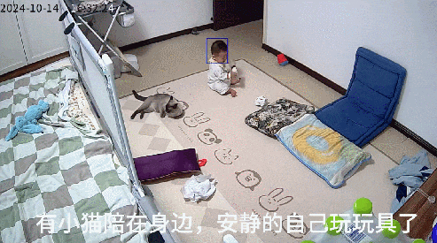 有了小猫的陪伴,小朋友也不哭了,安安静静的玩起了玩具。