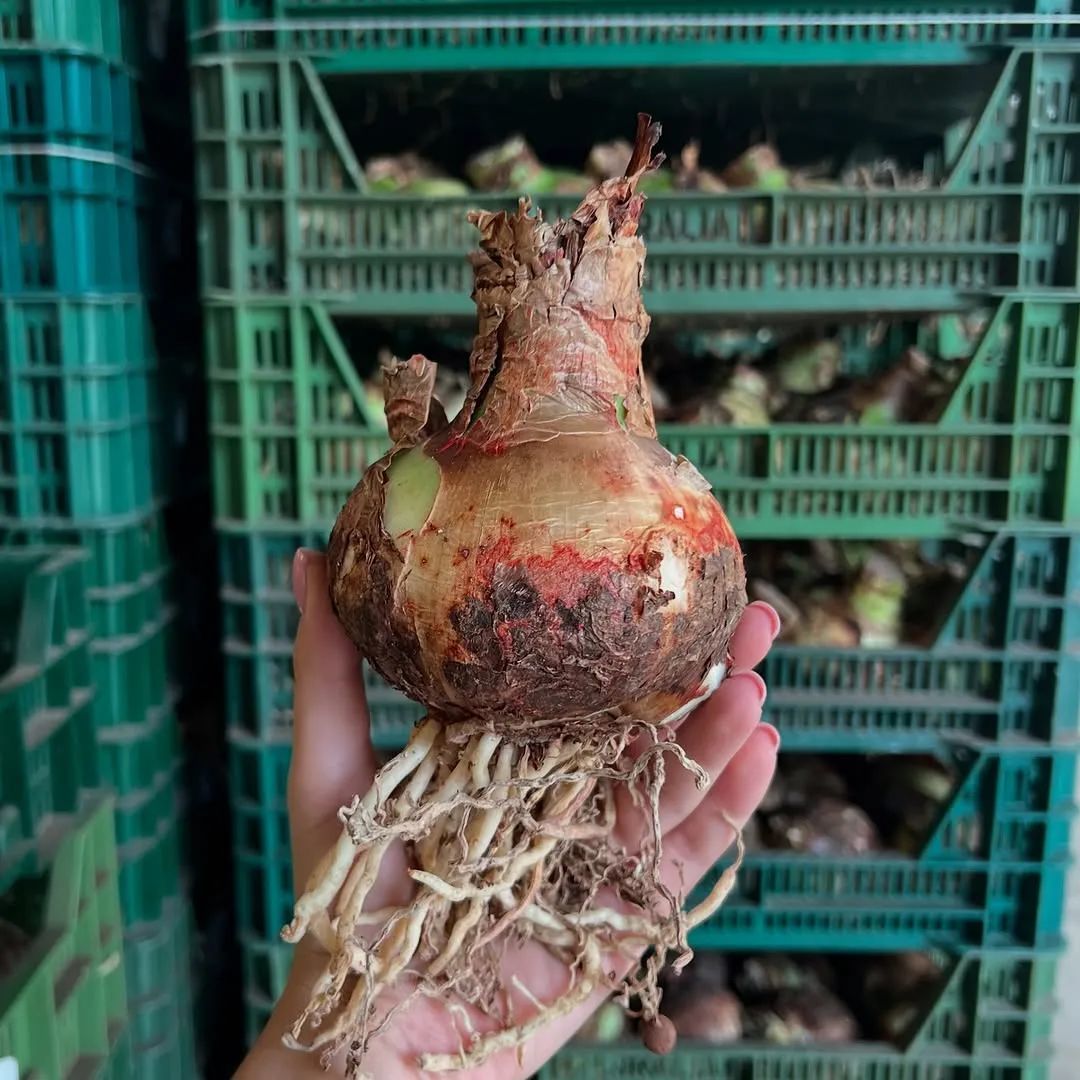 当然要注意,网上有很多用蜘蛛兰的种球冒充朱顶红的,就是花友们平常所说的“蜘蛛精”,蜘蛛兰的种球,脖子很长,就是种球上方会有一段白色的茎,这段白色的假茎上方在长叶子,而朱顶红的种球上方就直接长叶子了,这个区别还是很大的。