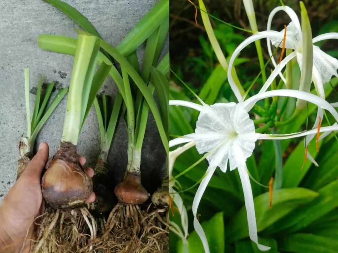 上面是蜘蛛兰的种球和它的花朵