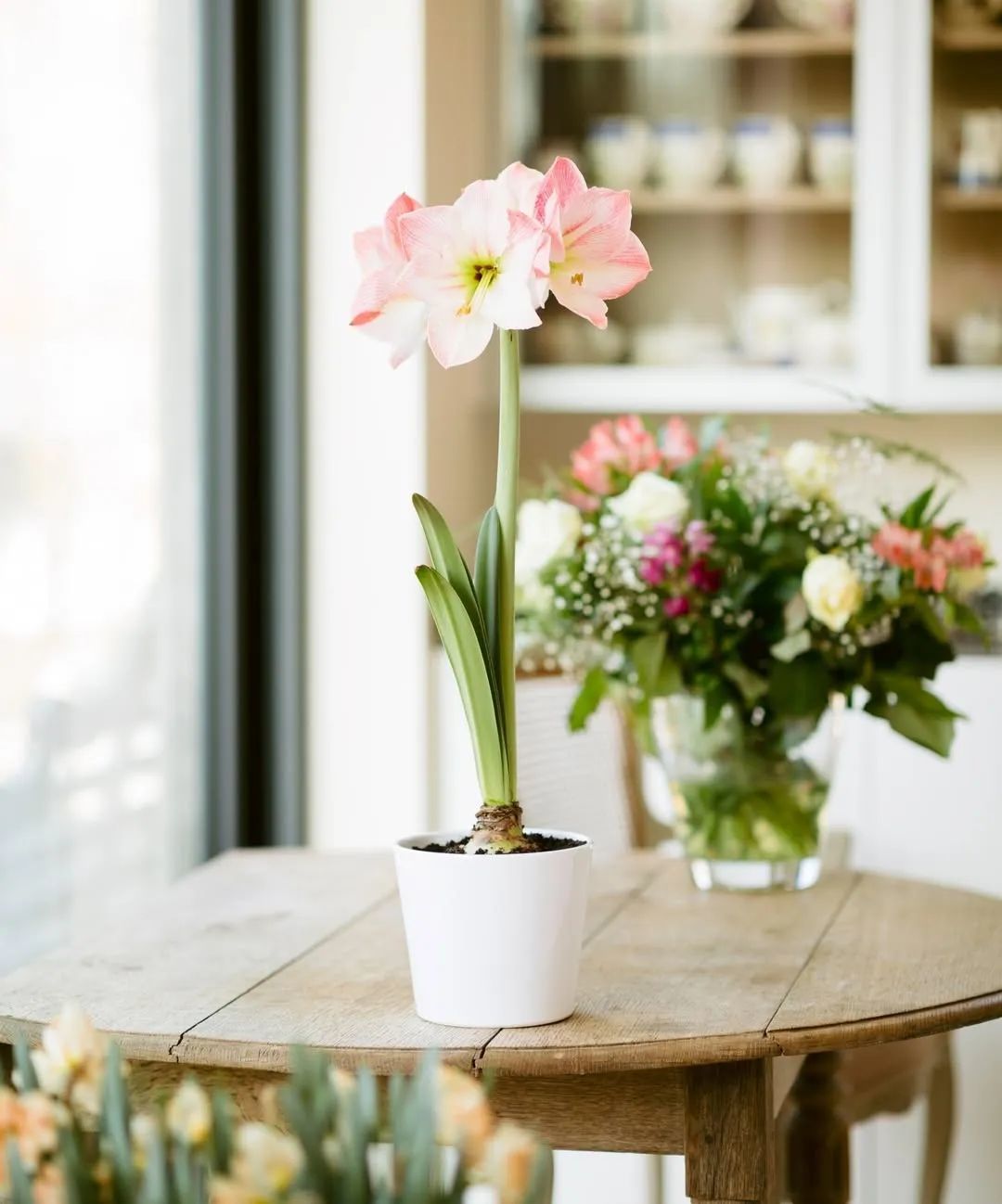 刚栽种朱顶红的种球时,不建议种到太大的花盆中,盆太大土太多,会导致盆土干得特别慢,不利于它长根。