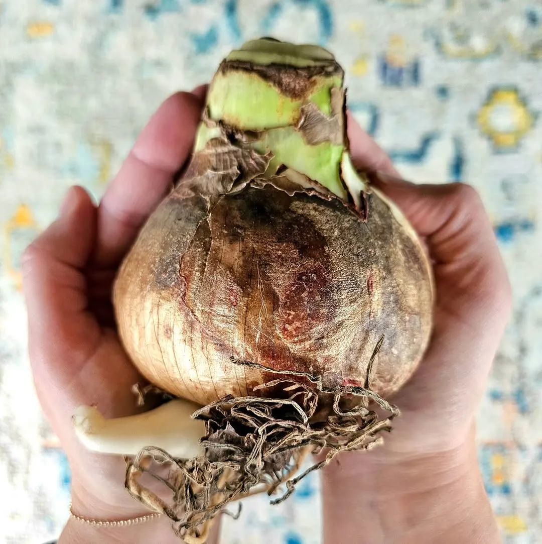 就比如第一年买回家的朱顶红种球如果根系长稳了,那抓住整个球,轻轻往上提一下,是有阻力的。如果没有阻力,那基本就是还没长根,这是一个测试是否长根的方法,但是建议不要经常碰它的球。