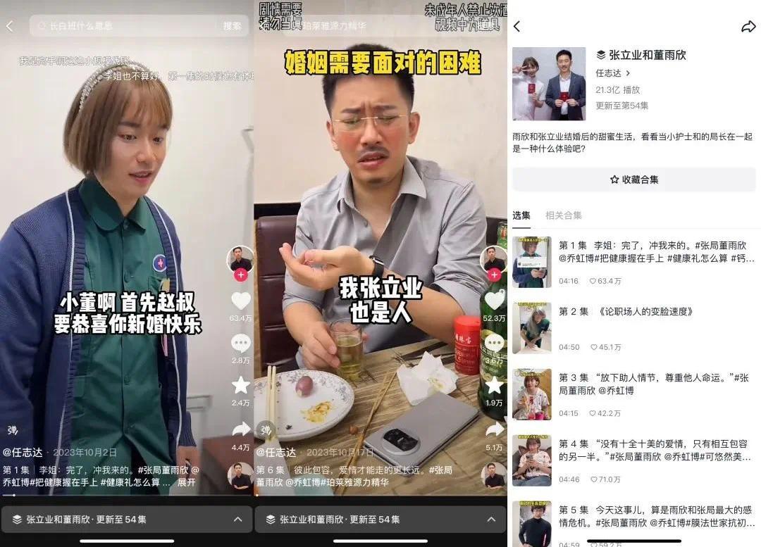 《张立业和董雨欣》的主角不仅是一对“老夫少妻”,更成为许多品牌的“活广告”。除搞笑类型外,爱情、家庭剧也是品牌主们倾向合作的微短剧类型。