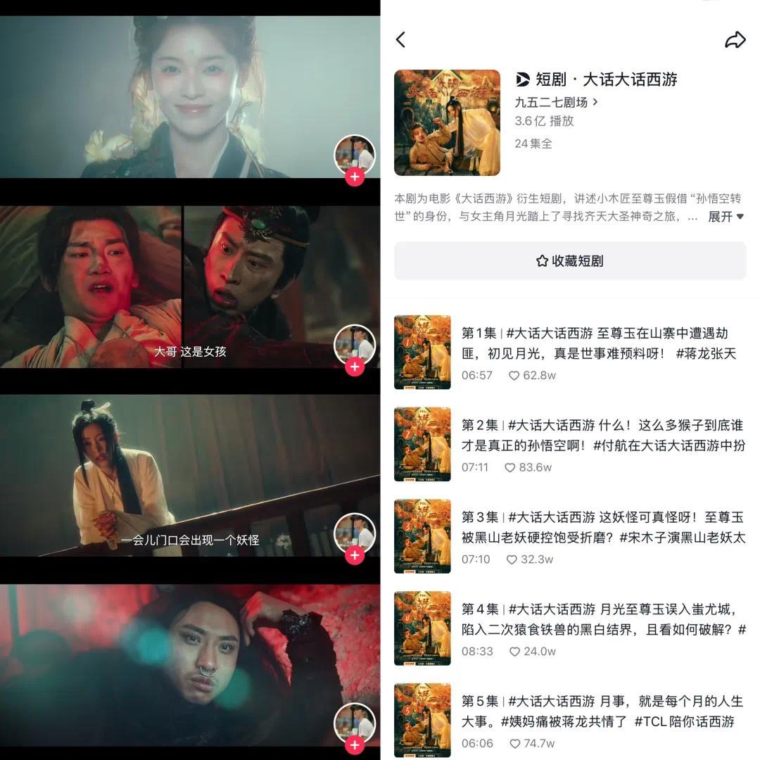例如《大话大话西游》在孙悟空战斗场景中,运用了大量特效渲染,赋予短剧更多震撼力与观赏性。随着技术门槛的降低和工具的普及,短剧的整体制作水平将不断提高。
