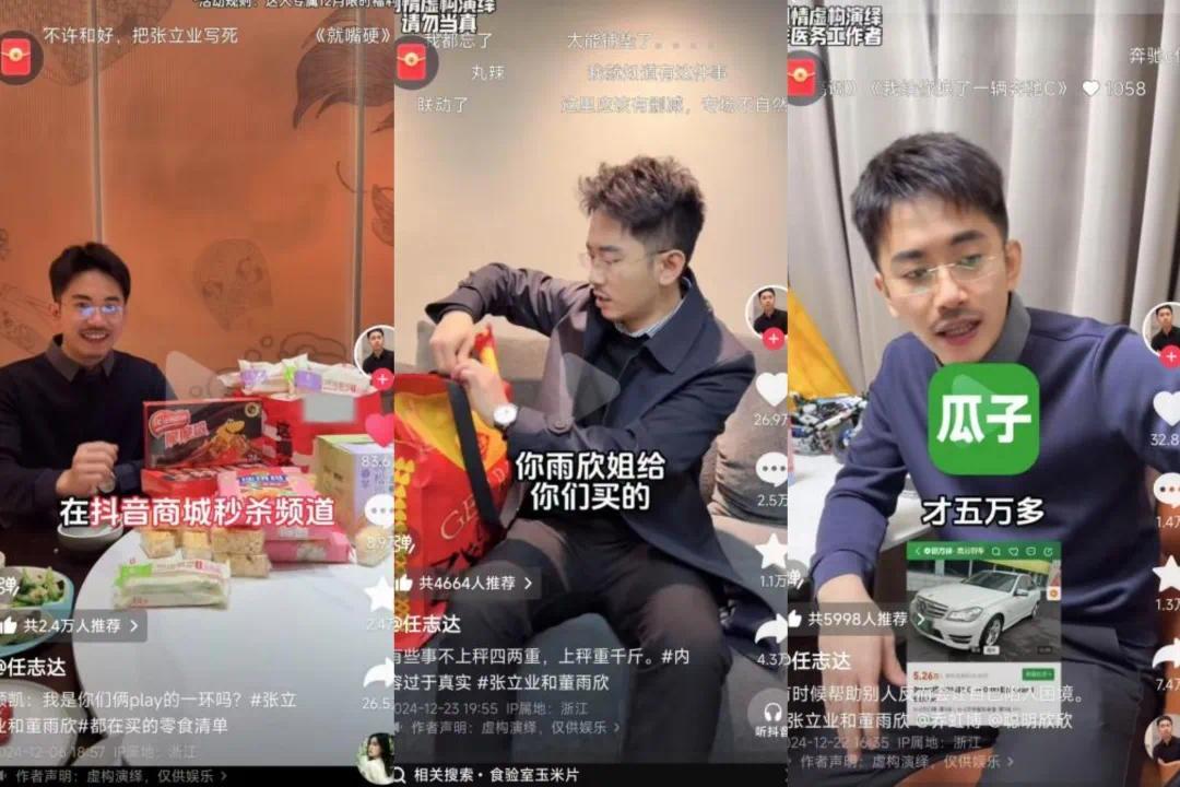 例如,夫妻日常带娃及董雨欣“爱吃零食”的小女孩设定将食品广告打得如鱼得水,不仅多次出现零食大礼包的相关广告,还设定了#张立业和董雨欣都在吃的零食# 相关话题;张立业权贵的身份使其代言豪车、名表等也并不违和,人设内在的张力和丰富性使其嫁接广告属性较为顺畅。