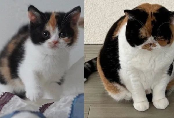 前几天,一位岛国网友心血来潮拿出自家三花猫大上小时候的照片和现在进行对比。