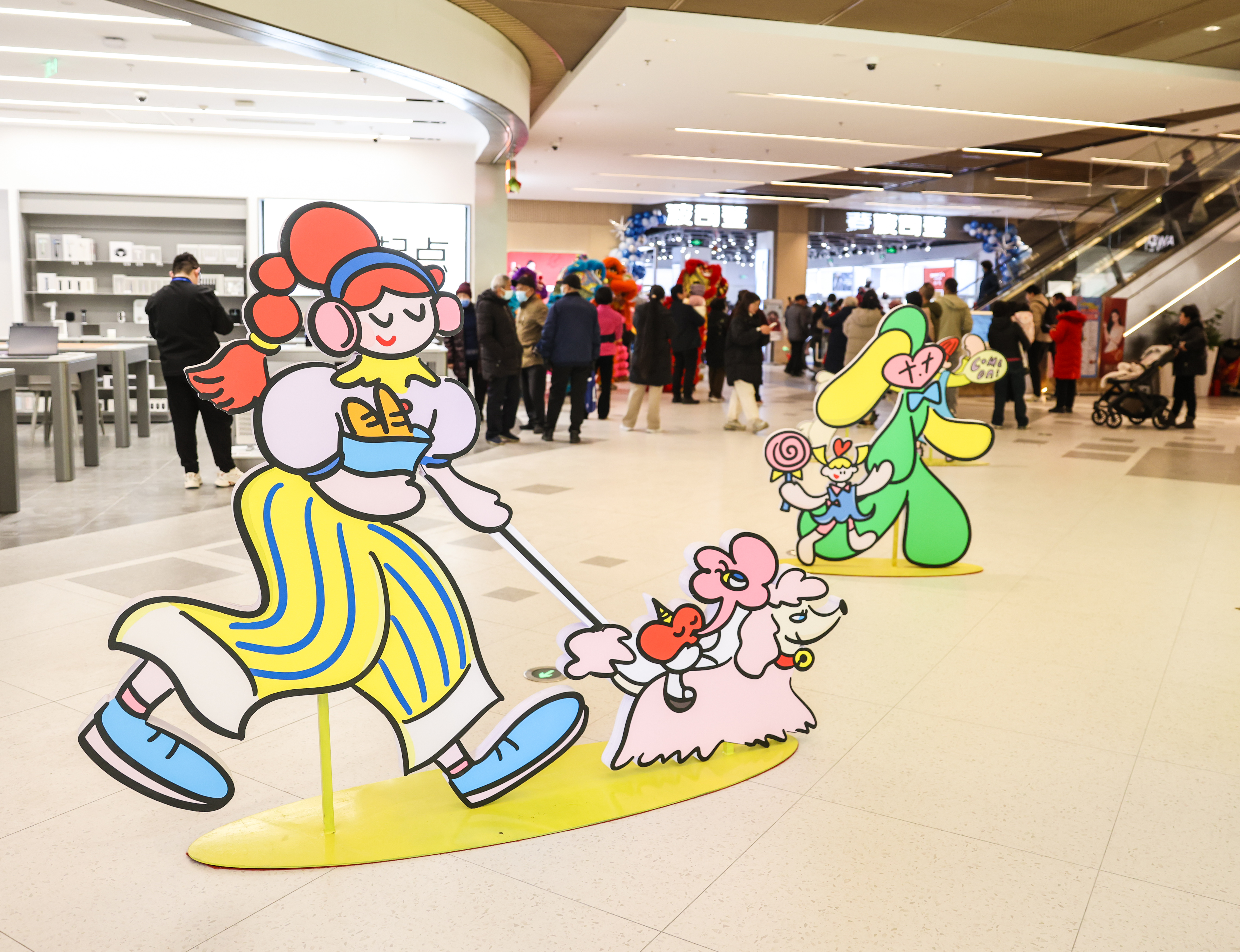 作为融合商业、办公和住宅的全新商业枢纽,川沙九六广场通过空中连廊打造家门口的美好生活,共绘川沙新镇宜居宜业宜乐的美好生活新图景。开业期间系列活动以IP合作为切入点,携手自由插画师Caro绘制“川沙好生活”,倾力打造“逐光之旅家年华”主题展。超大型艺术美陈装置“心宝”同期空降主入口,并在多处点位设置互动打卡点,带来高品质文化艺术体验与沉浸式生活享受,向市民传递“生活在此,欢聚在此”的邻里感商业理念。
