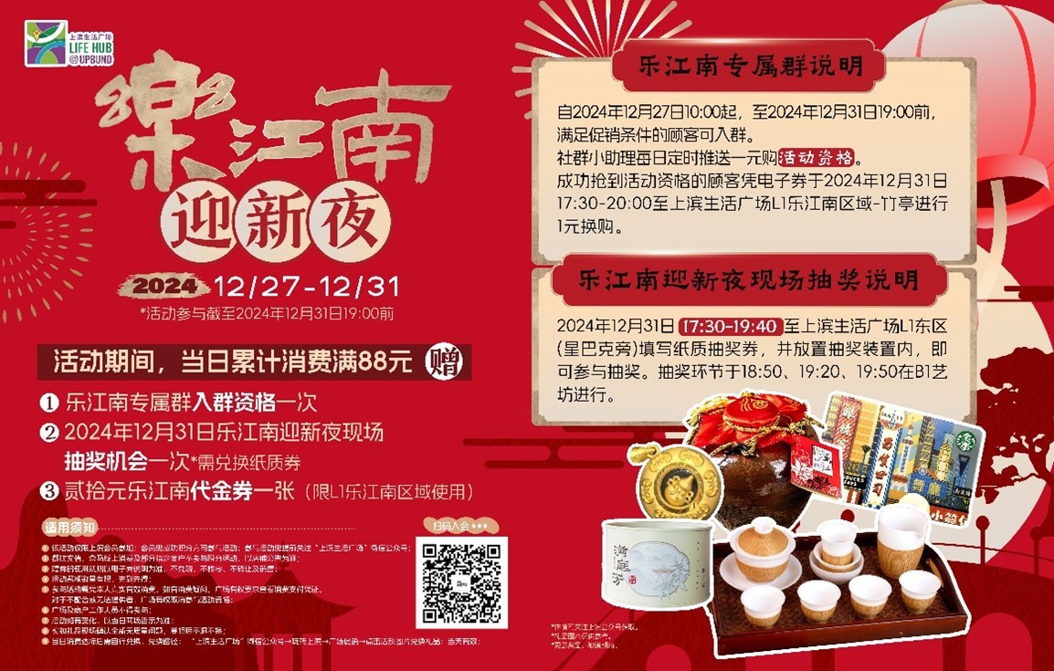 辞旧迎新之际,位于虹口区的上滨生活广场推出“乐江南·迎新夜”活动。