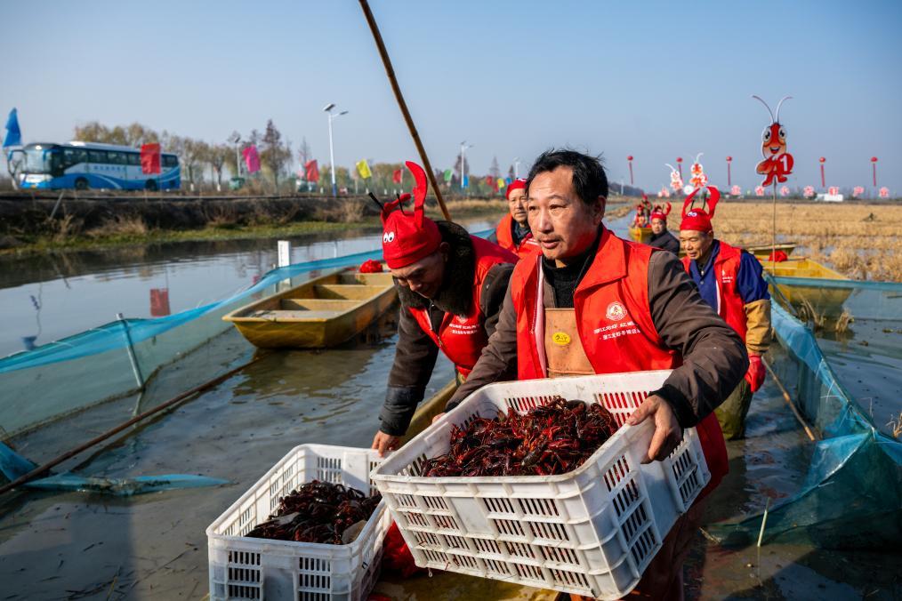 这是小龙虾养殖大市潜江第一次举办小龙虾冬捕仪式,标志着潜江“四季有虾”养殖技术的突破。
