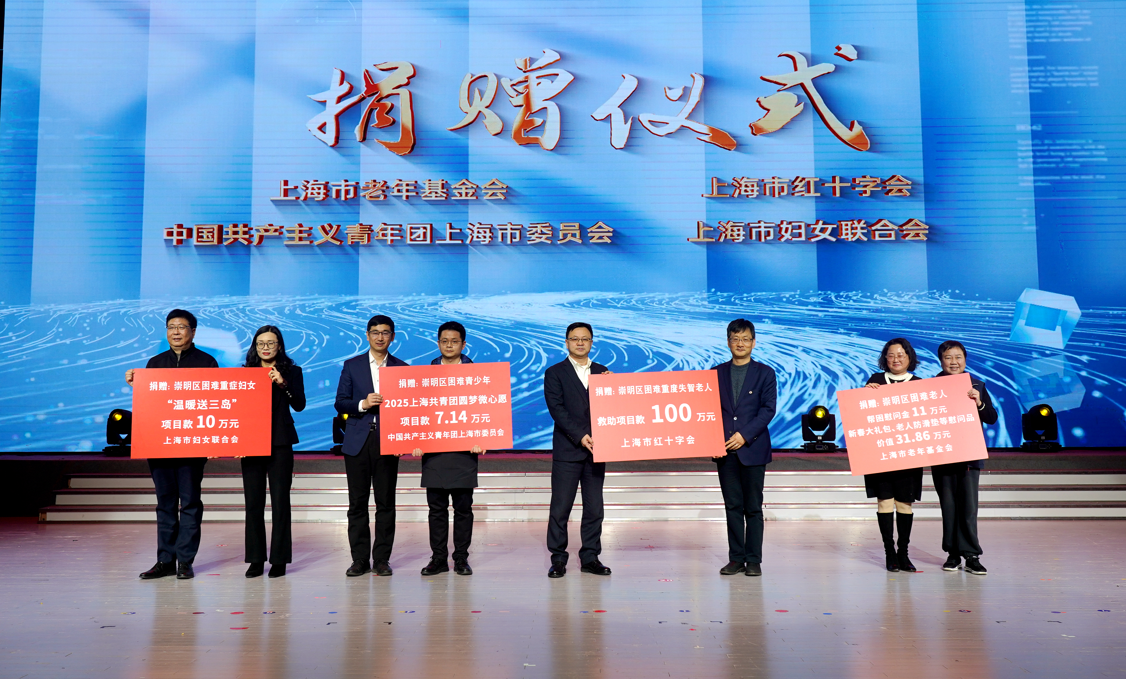 今年,上海市慈善基金会向“崇明三岛”群众捐赠了价值784.39万元的慰问品,以及慰问金40万元;上海市老年基金会向崇明区老人捐赠了价值31.86万元的新春大礼包、老人防滑垫等慰问品,以及帮困慰问金11万元;上海市红十字会向崇明区重度失智老人捐赠了救助项目款100万元;共青团上海市委会向崇明区青少年捐赠了圆梦微心愿项目款7.14万元;上海市妇女联合会向崇明区重症妇女捐赠了“温暖送三岛”项目款10万元;上海市残疾人福利基金会向崇明区残疾人捐赠了价值10万元的品牌微波炉200个;上海市志愿服务公益基金会向崇明区的志愿者捐赠了价值12万元的慰问品;上海市儿童基金会向崇明区儿童捐赠了“监护缺失儿童”关爱项目款11.37万元。