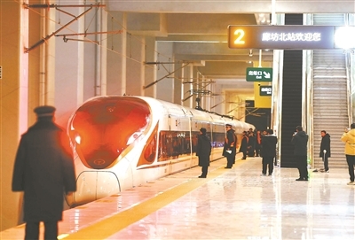 昨日,怀兴城际铁路廊兴段正式开通运营。清晨6点36分,河北廊坊北站,怀兴城际铁路廊兴段首趟列车——G8815次准时发出,15分钟后到达大兴机场站。
