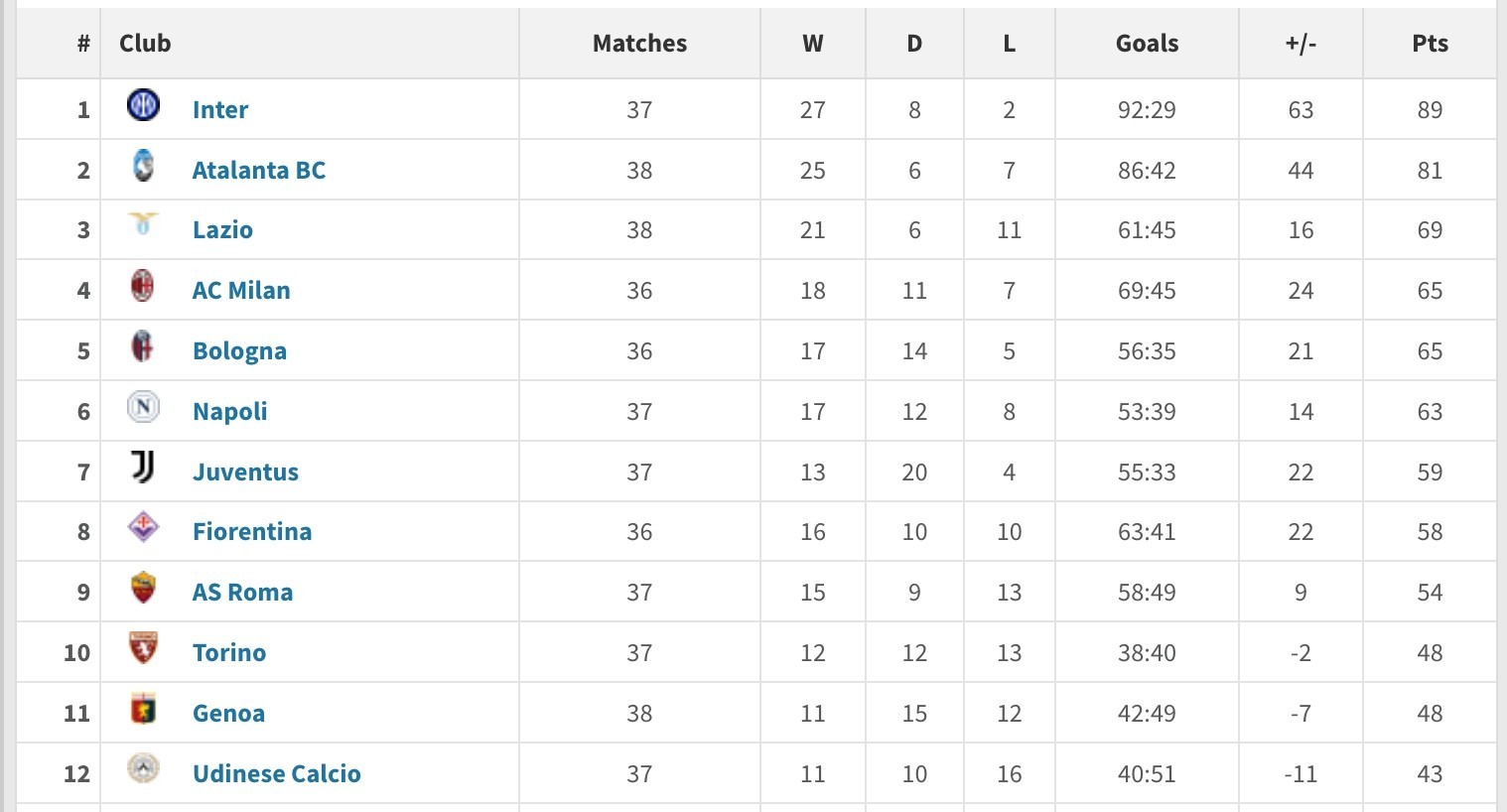 2024年意甲积分排名第二的亚特兰大也结束了全年的全部比赛,他们在第18轮的比赛中客场1-1战平拉齐奥,今年他们共出战了38场意甲,总成绩25胜6平7负,打进86球丢42球,净胜球+44,积分81,在多赛一场的情况下落后国米8分的差距。