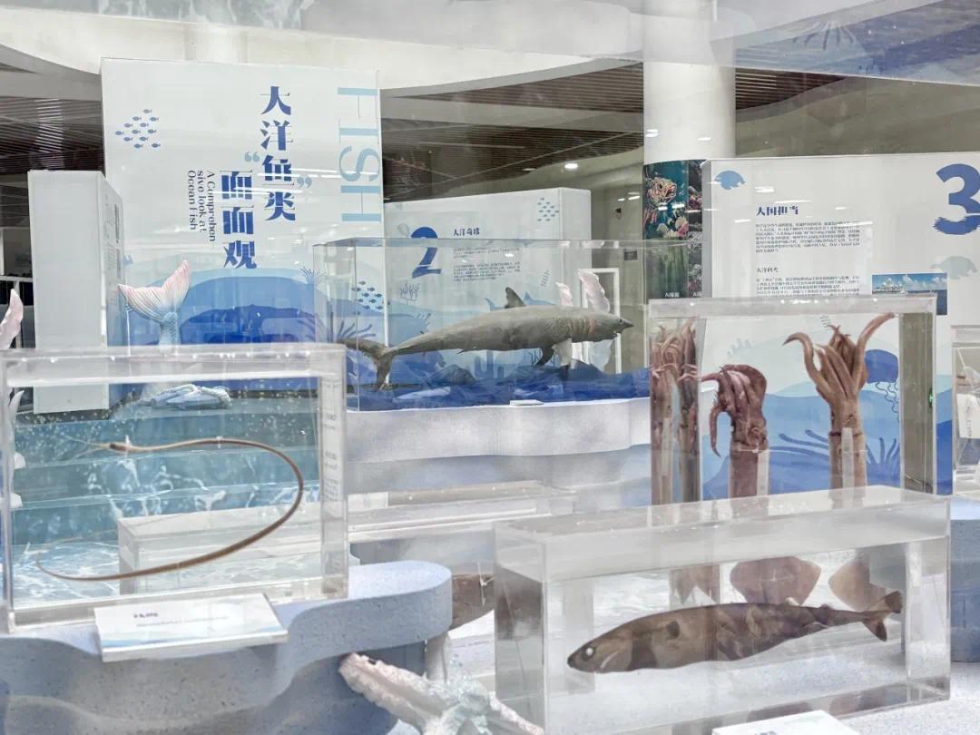 该校学生小王说:“课间看看有趣的鱼类标本和同学们的作品,心情放松又能学到知识。”