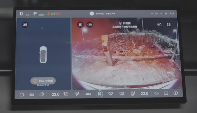 通过测试现场的图片,我们可以看到,被雪覆盖后地上的车位线非常不清晰。当深蓝L07开到车位附近时,通过车内屏幕可以看到,它是精准地识别出了被大雪覆盖的车位。车内驾驶者通过点击屏幕中的车位,车辆自动按照手指点击的车位停好,并没有受到雪地的影响,而且整个操作非常简单。深蓝L07在雪地里识别车位的能力显然没有什么问题。