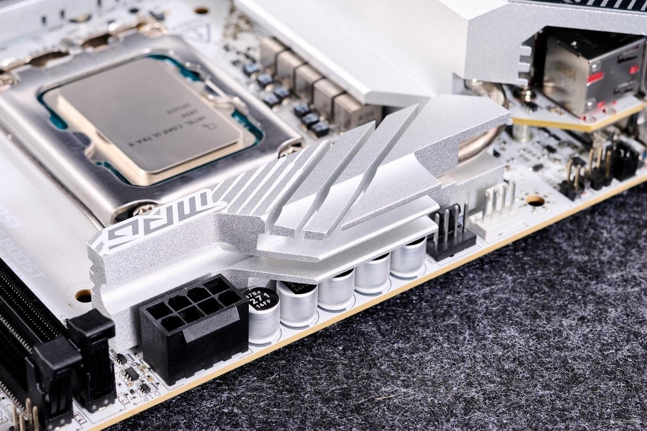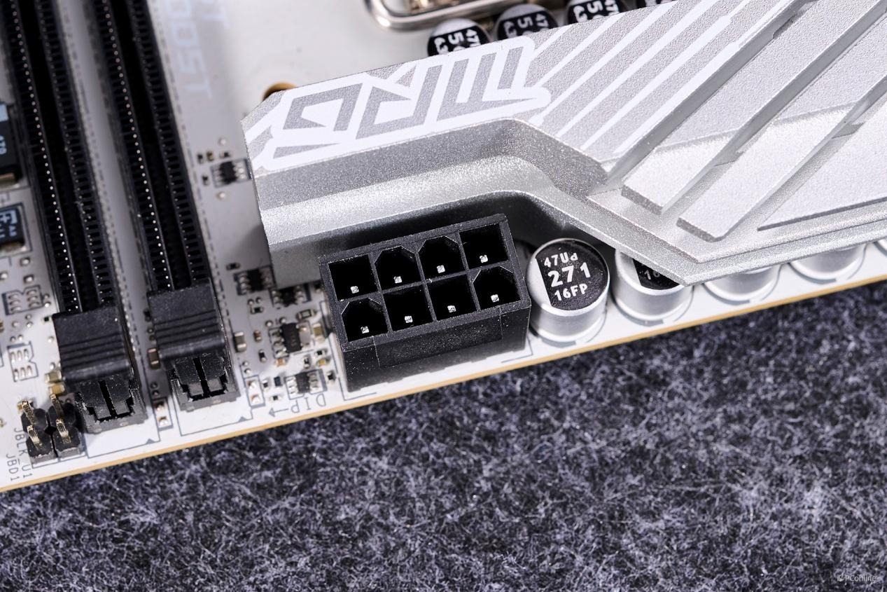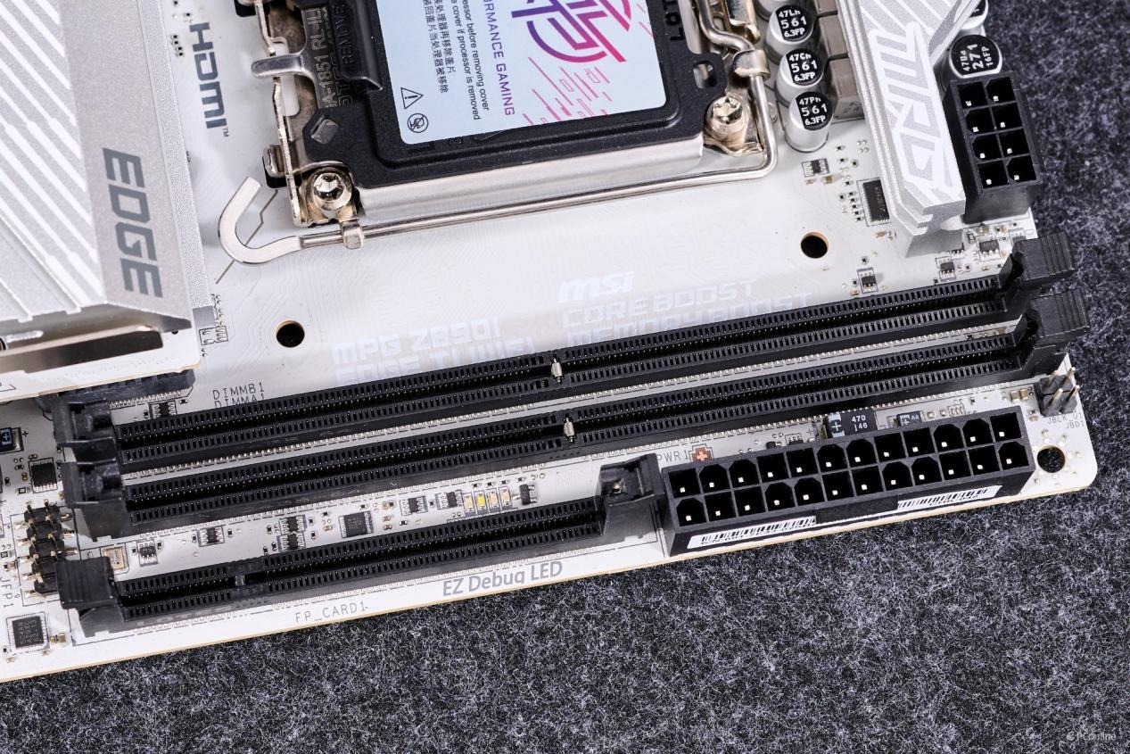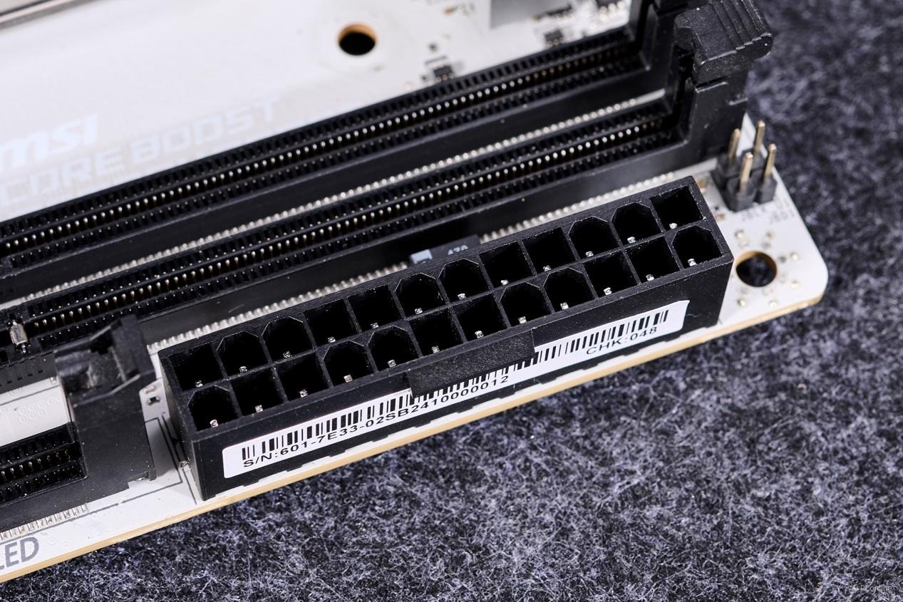 24Pin供电接口放到内存右旁,而且两个接口均采用全实心针脚设计,提升接口供电稳定性。