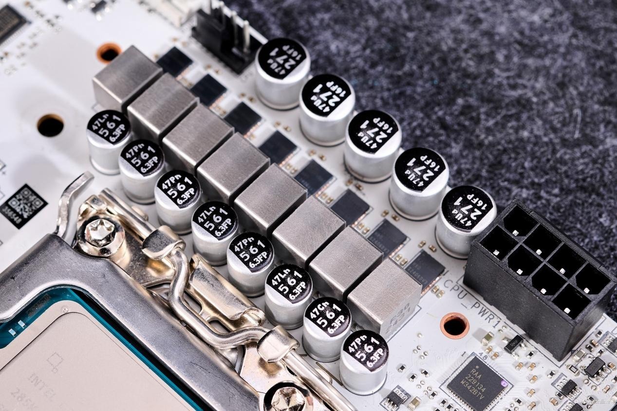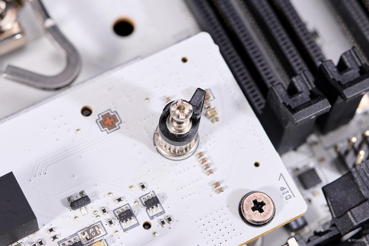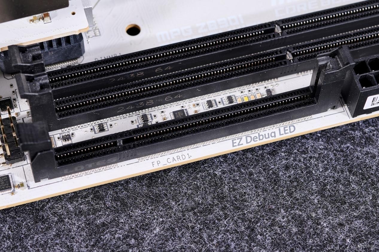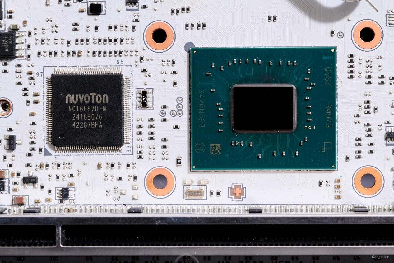 24Pin供电接口放到内存右旁,而且两个接口均采用全实心针脚设计,提升接口供电稳定性。