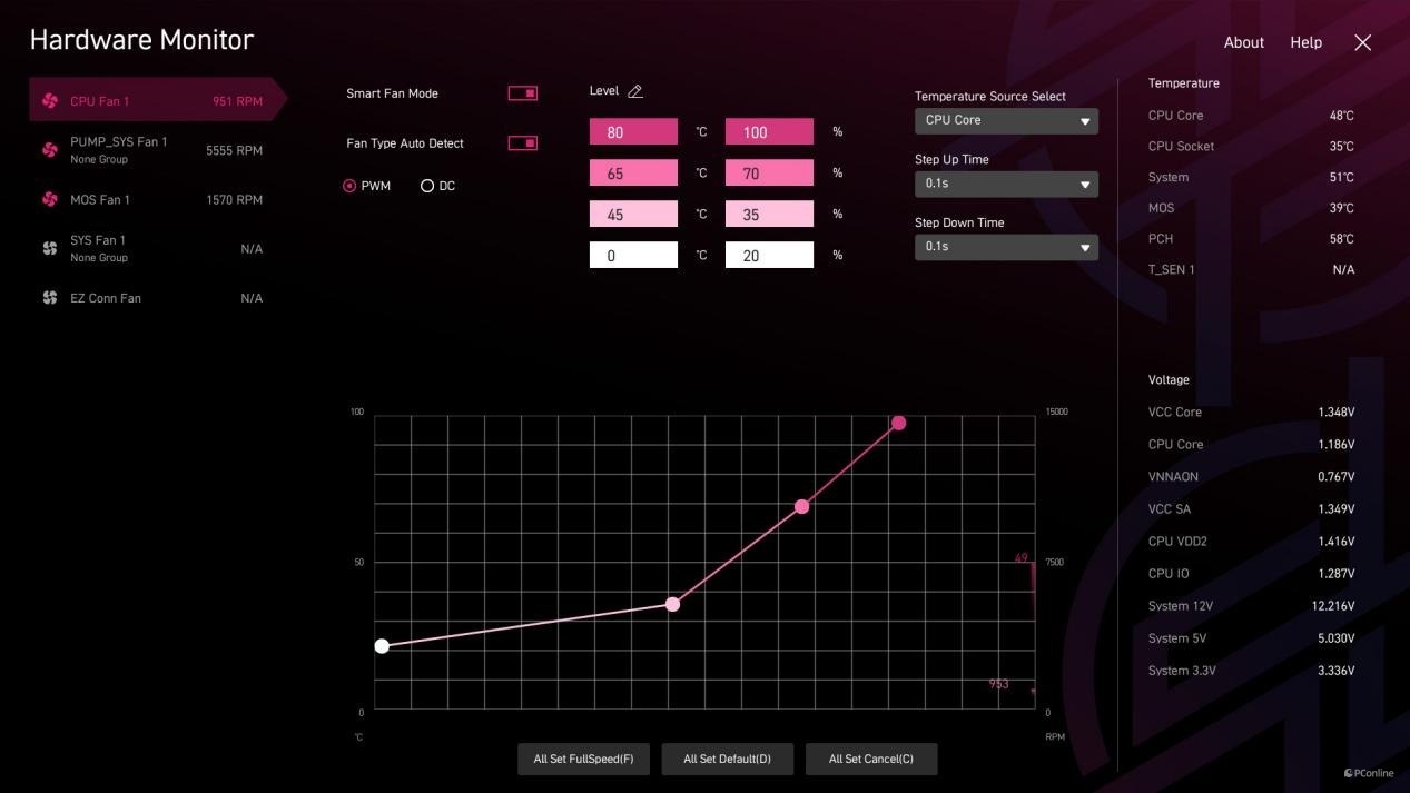 用户可以单独对风扇进行设定,当然建议厉害优先采用智能风扇模式