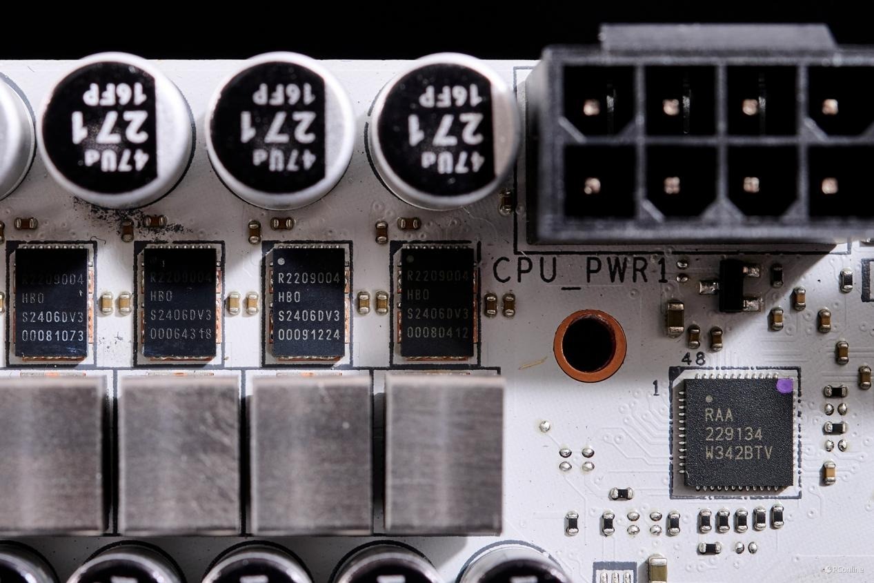 其中10相Vcore供电中所采用的DrMos芯片型号为R2209004,持续最大输出电流可达110A;而主控芯片则是RAA 2291 PWM控制芯片。