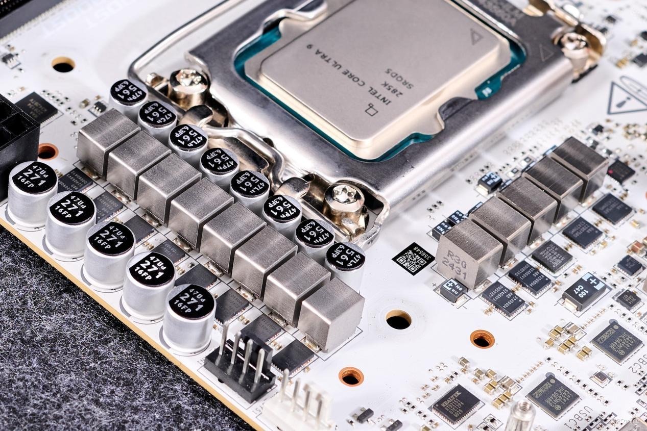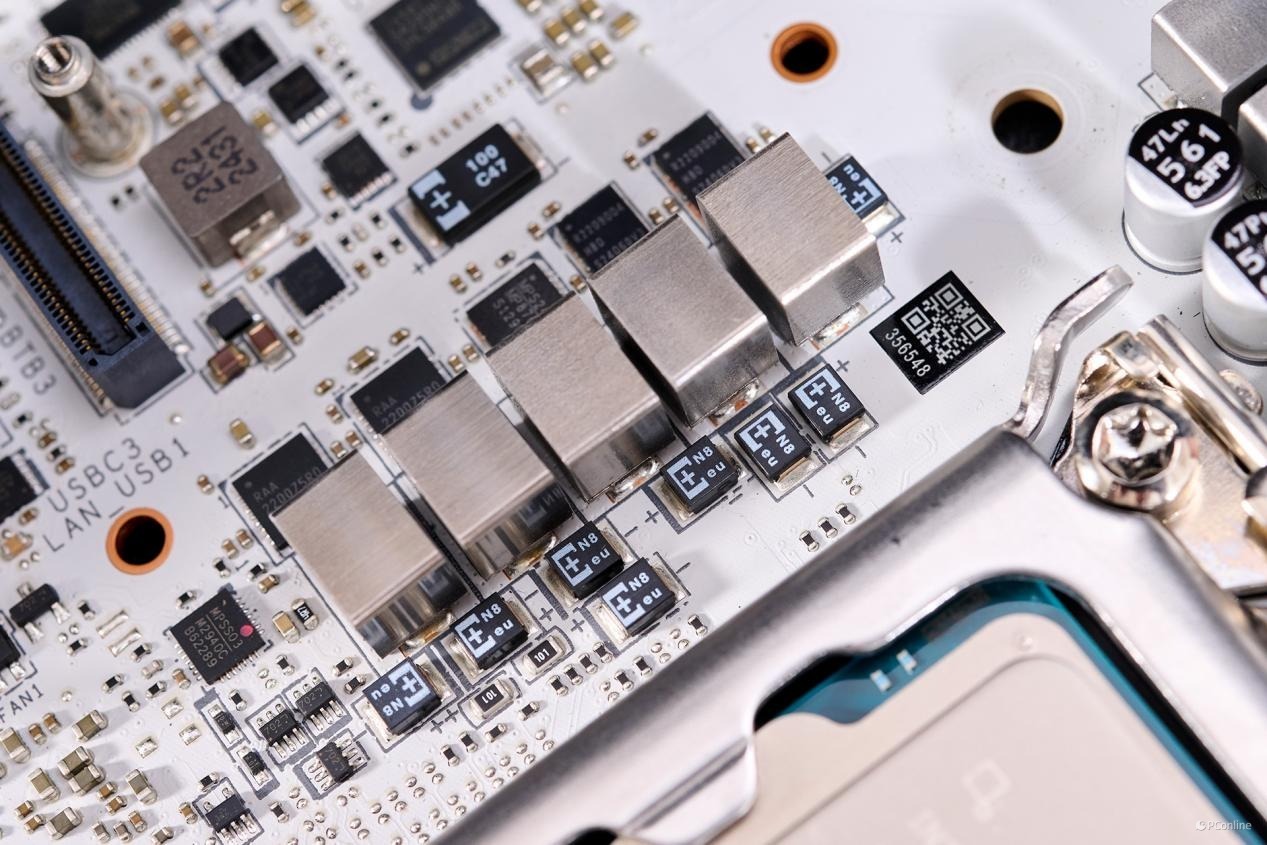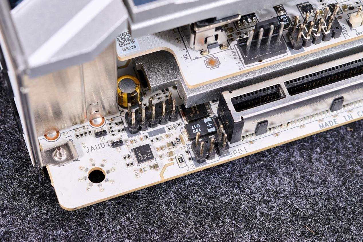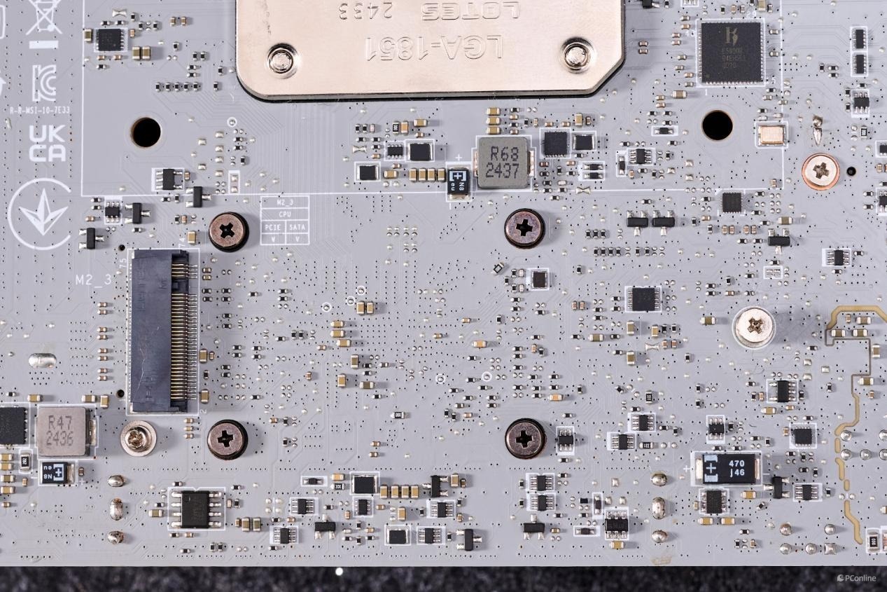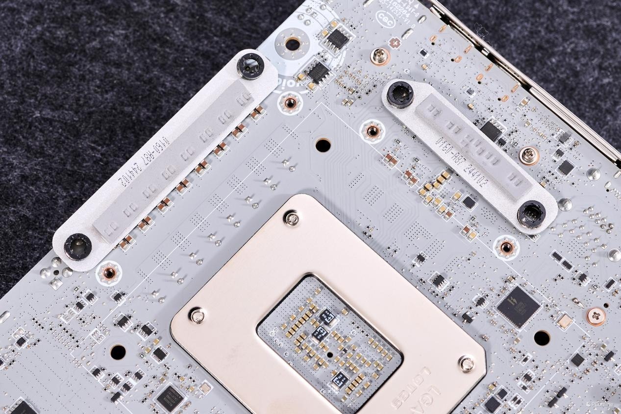 正面PCB设计已经足够的饱和,别看处理器与内存之间是空着的,那是因为PCB内部是密密麻麻的DDR5优化布线,就为了内存能上更高的频率而设计。