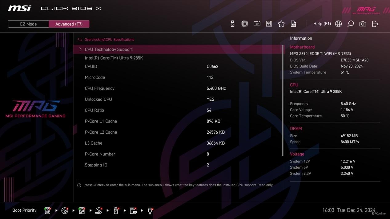 处理器方面,微星MPG Z890I EDGE TI WIFI 刀锋 钛主板支持目前英特尔最新推出的酷睿ULtra处理器K系列处理器,以及将会在CES2025期间发布的酷睿ULtra处理器非K系列处理器。