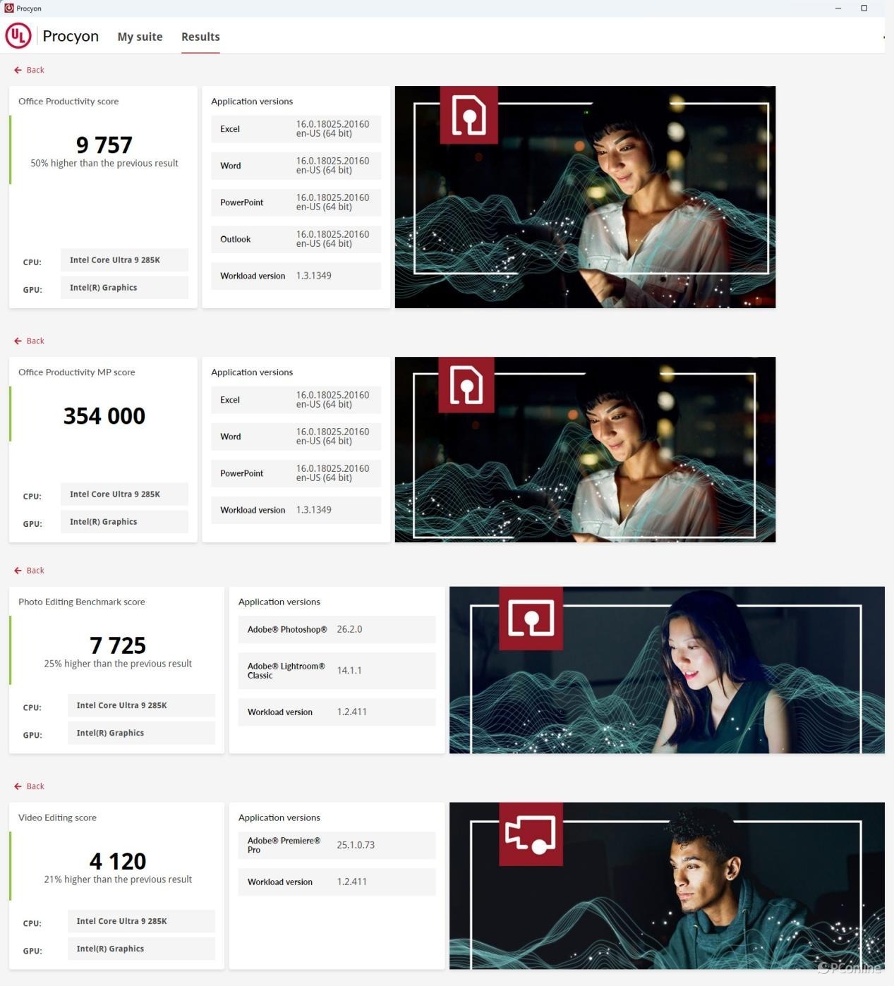 同时我们进行了PCMARK10与UL Procyon更详细的测试,包括OFFICE、图片,以及视频测试。总的来说,在不安装独立显卡的情况下,微星MPG Z890I EDGE TI WIFI 刀锋 钛主板依靠Ultra 9 285K强劲的综合性能,发挥出很不错的性能表现,完全可以独立使用。