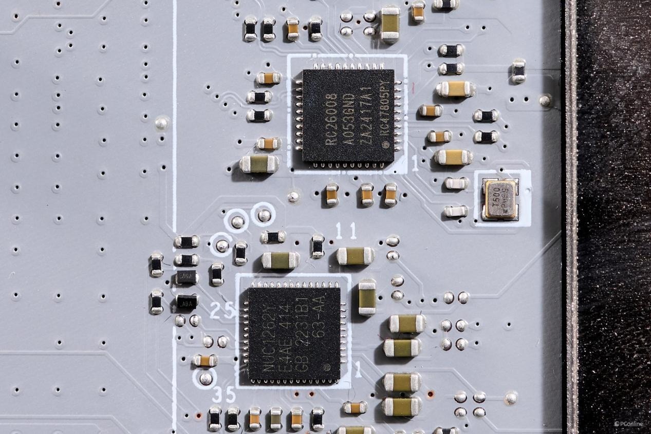 Renesas RC26008外置时针发生器,可以让玩家进行外频超频;而NUC1262芯片则是主板上的LED与风扇PWM控制芯片。