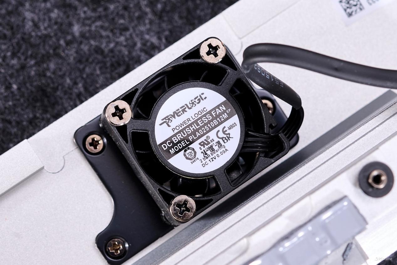 小风扇顶部开孔,同时把冷风吸到散热器内部,形成主动散热效果