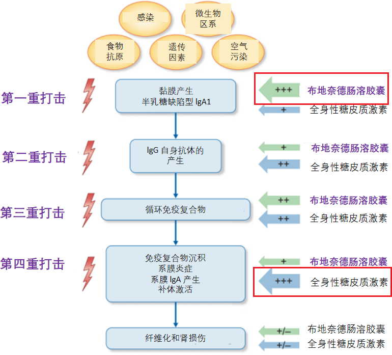 在全身性糖皮质激素治疗期间患者们Gd-IgA1水平仍然会升高,它们对IgA肾病“第一重打击(源头)”的作用就很弱了。