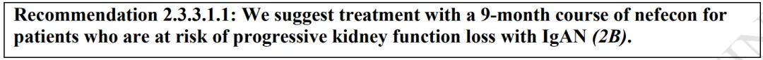 新版指南建议:对有疾病进展风险的IgA肾病患者进行9个月的布地奈德肠溶胶囊治疗(2B)。