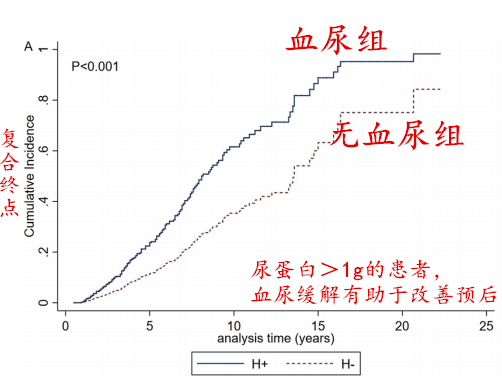 尿蛋白没有缓解的患者组,血尿缓解后肾病进展相对风险降低54%。