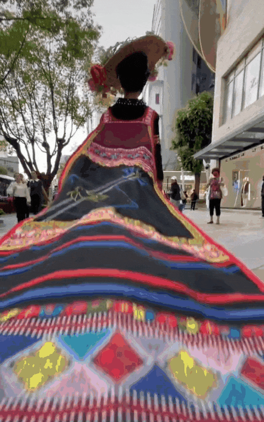 千年的非遗传承在长裙表面缓缓铺陈。