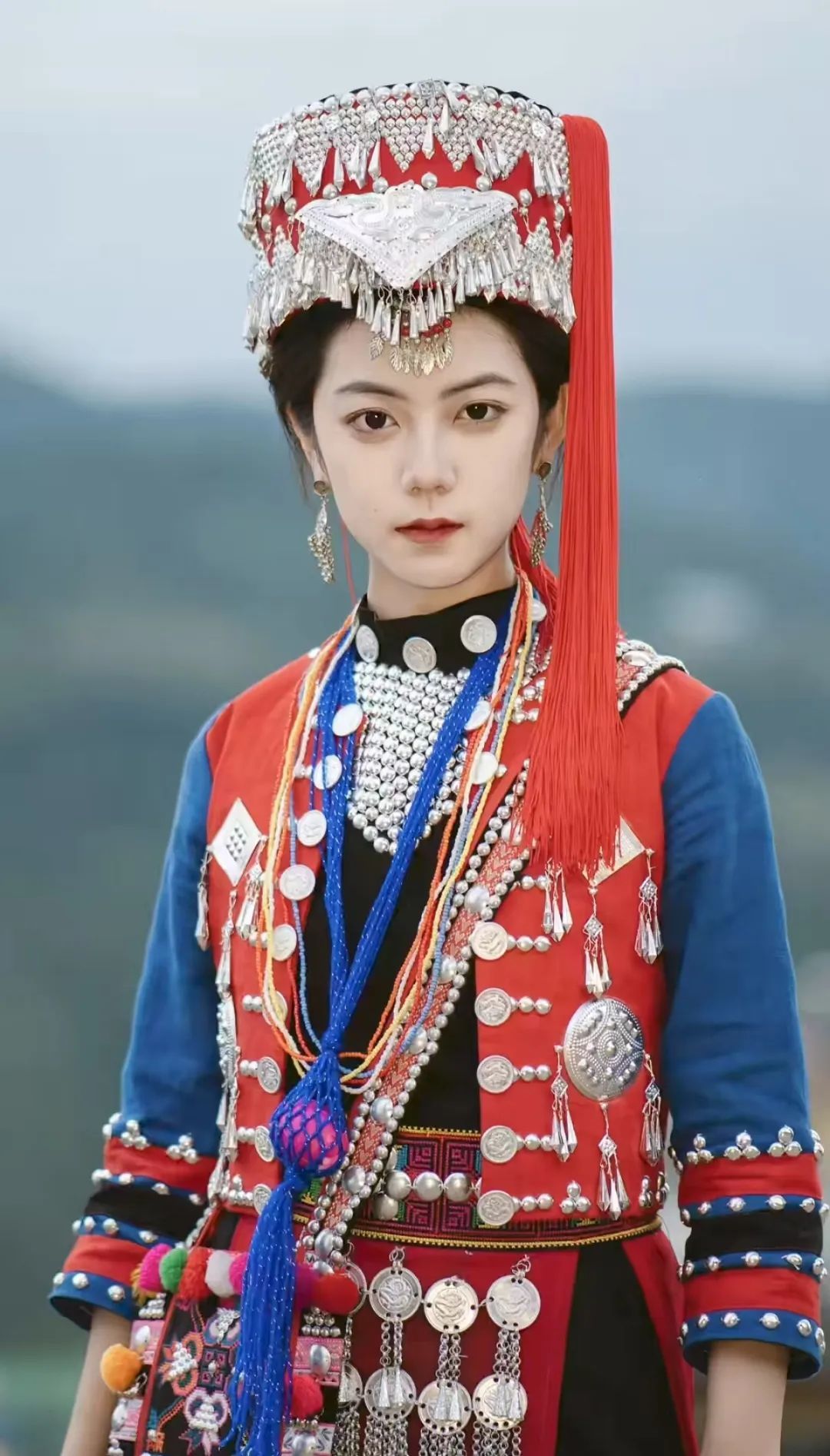 配以银饰和花竹帽更显端庄秀丽;