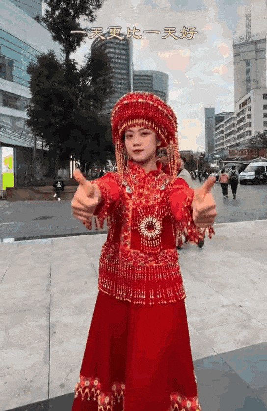 民族服饰的美在她的视频里一览无余。
