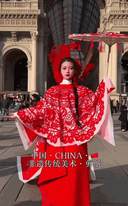 就把中国的非遗剪纸穿到了米兰街头,