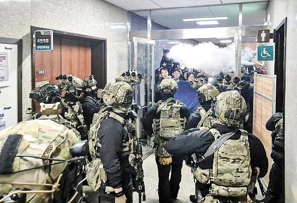 △当地时间12月4日,尹锡悦宣布紧急戒严后,军队进入国会大厦。