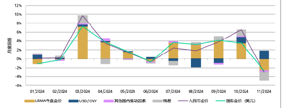 2024年以来,国内金价屡创新高。截至11月底,以上海黄金交易所(SGE)Au9999为代表的人民币金价飙升了28%,成为今年国内表现最好的资产。