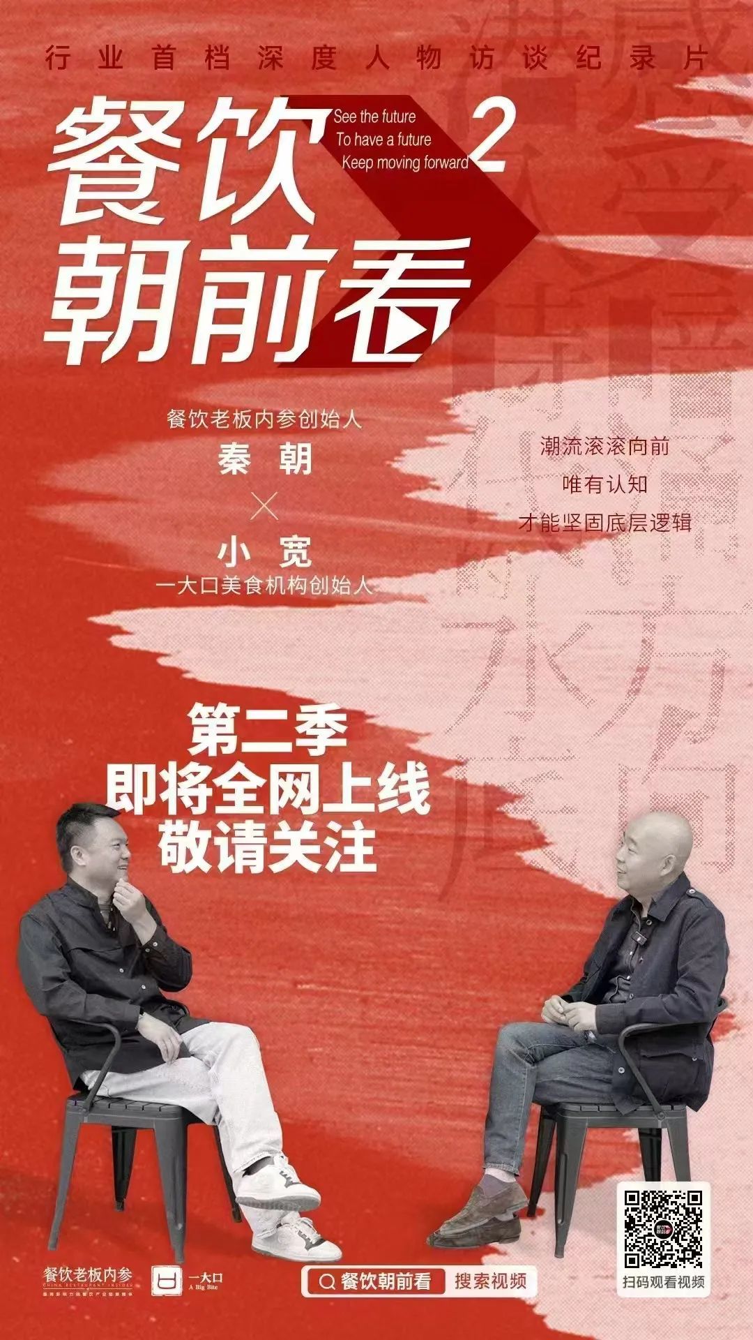 第一季一共10集,我和秦朝,两个年过四旬的奶爸,一个光头,一个方脸,走了很多城市,访谈了很多餐饮从业者,其中有困惑,也有机遇,我们试图从不同维度,切入这个庞大且多元的市场深处,感受水底的暗流,一个每年超过5万亿的巨大市场,需要有一个深度探究的视频节目,不是探店,不是教人做饭,不是娱乐综艺,而是思考与认知,与时代同频,与行业共振。